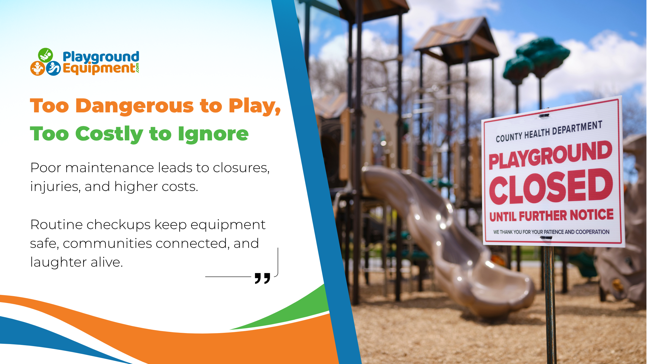 Rusty bolts, loose chains, splintered wood, and cracked plastics aren’t just eyesores; they’re warnings that play may no longer be safe.