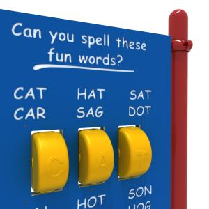 When you add the Freestanding Spelling Panel with Posts to your playground you are giving children the ability to take control of their own learning. Thanks to the three spinning cylinders, kids can turn them around in order to make lots of three letter words. Younger kids will be surprised at the way a handful of letters can be arranged in so many ways to create a variety of words. It not only helps with letter and word identification and spelling, but it also assists with pronunciation too as they discover words that look the same might not always sound the same when said. If kids are still in the stage of learning phonics, then this fun panel is going to help them develop much quicker. It can be used by kids to explore on their own, or with some adult assistance. The posts and board are created from weatherproof materials so the Freestanding Spelling Panel with Posts will stay looking great through all seasons.