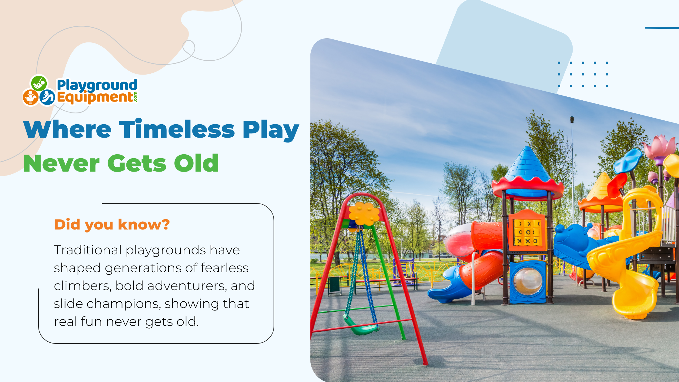 There’s a reason classic playgrounds still steal the spotlight. With their slides, monkey bars, bridges, and swings, these favorites have stood the test of time, offering generations of kids the perfect mix of fun, challenge, and discovery.