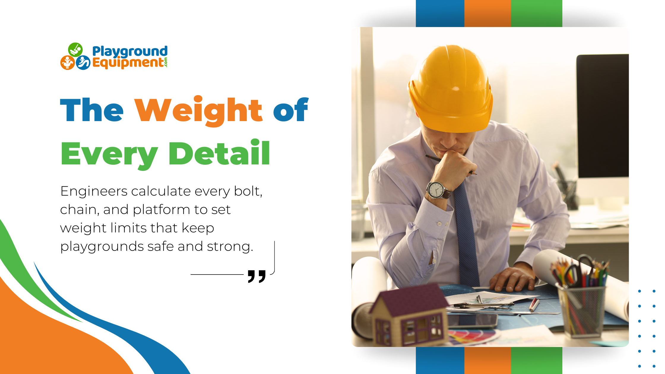 Every piece of equipment is engineered with safety, physics, and practicality in mind. Weight limits come from careful load testing, proven material strength, and federal safety standards. They are there to make sure kids play safely without pushing structures past their limits.
