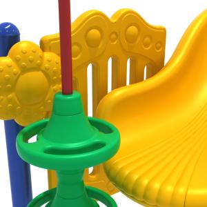 A perfect compact outdoor play center for smaller playgrounds or daycare centers with younger children, the Powell's Bay activity center has so much to see and do. Children can climb aboard via the Transfer Station and make their way to the upper platform the easy way, or they can choose a more adventurous path up the Pod Climber which features circular disks. Once at the top the only decision they have to make is which slide to go down as the Powell’s Bay structure has both a Left Turn Slide as well as a Right Turn Slide that children will love to race down for a fast exit. The Ship’s Wheel adds a tactile element to play as well as imagination because the structure is so large it could definitely be imagined as a sailing ship that needs a captain at the helm to sail the high-seas. There’s also a set of Bongos underneath the structure just begging to be banged rhythmically to add a sense of adventure to playtime.