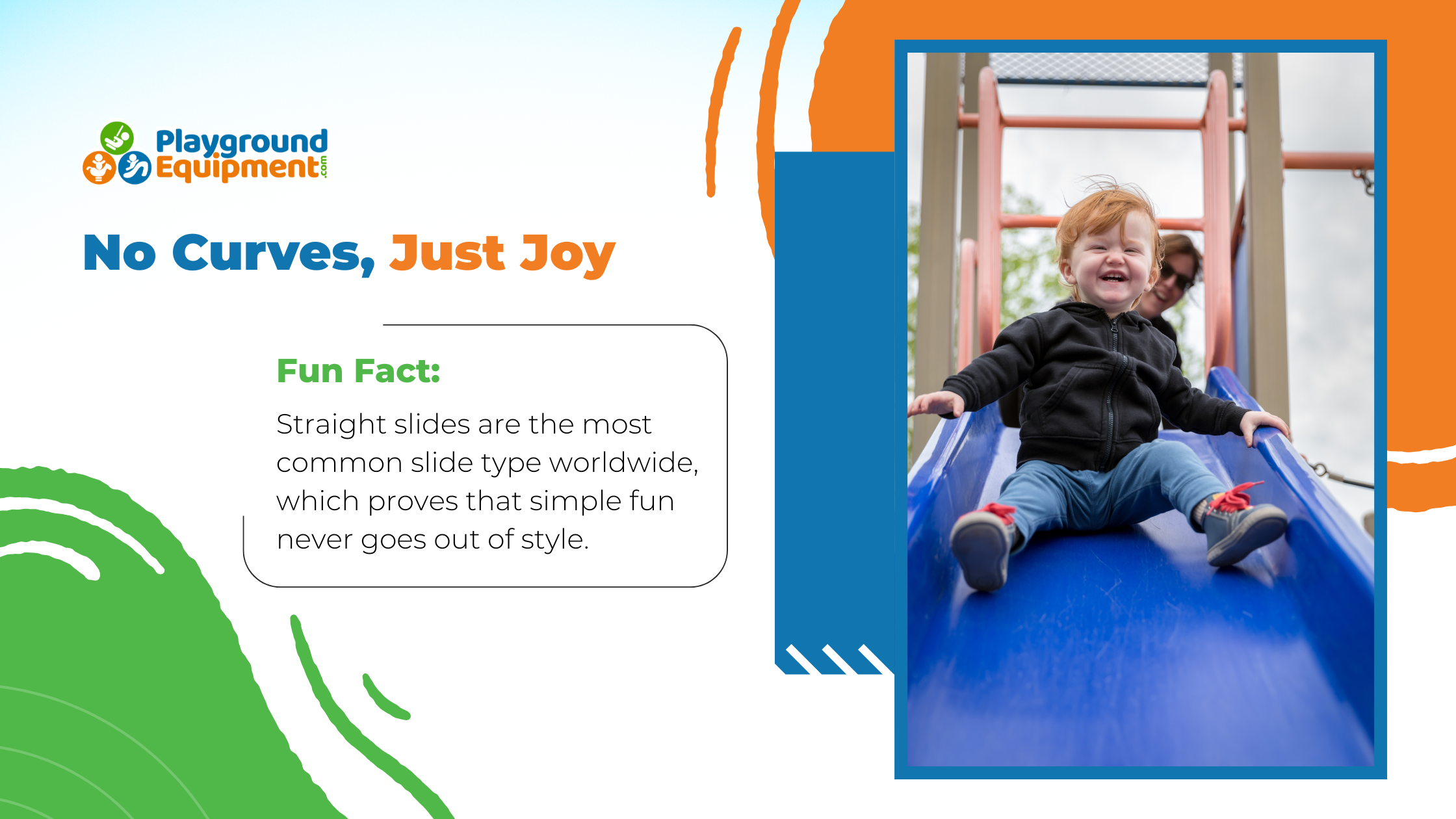 Straight slides are the ultimate “what you see is what you get” option. Kids don’t need directions; they just climb, sit, and whoosh.