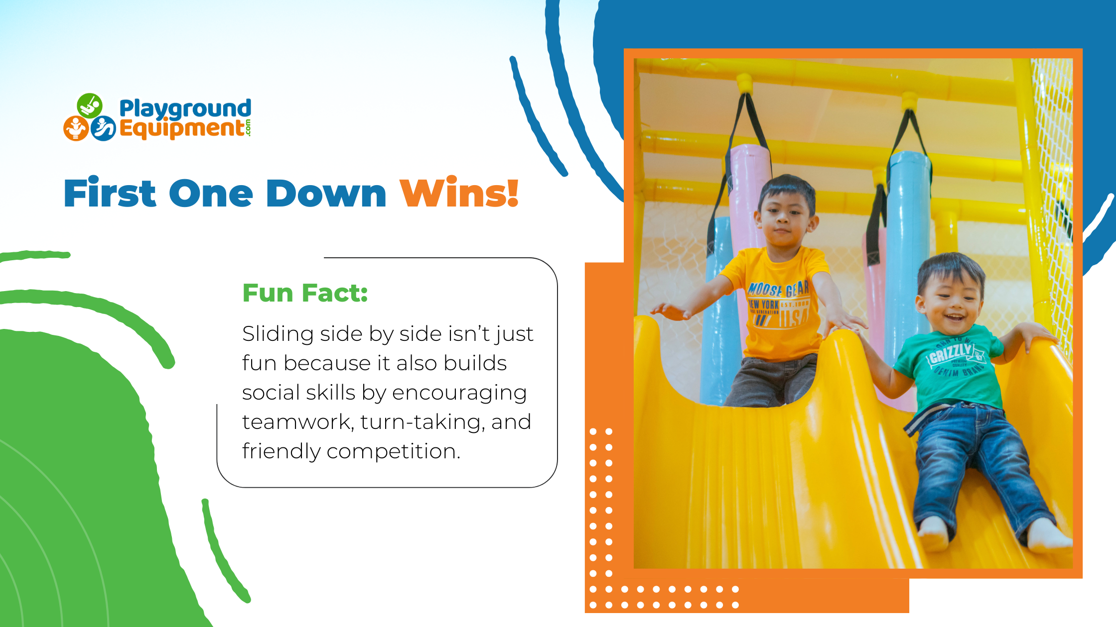 Playground slides don’t have to be a solo adventure. Double and multi-lane slides invite two or more kids to race side by side, turning every descent into a shared thrill.