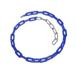 Upgrade your traditional galvanized steel swing set chain with our commercial-grade PVC-Coated Swing Set Chain. These high-quality swing chains not only meet safety standards for public use but are manufactured to withstand heavy use on the busiest community or school playgrounds. Our PVC-Coated Swing Set Chain offers a snug, textured grip and protection against snags, pinches, and the effects of cold weather, providing comfort and peace of mind to young thrill-seekers who will no longer worry about pinched fingers or slippery hands. Designed for use at schools, public playgrounds, parks, churches, and campgrounds, these high-quality coated playground swing chains come pre-cut in three sizes: 78 inches (6 feet 6 inches) for swings with an 8-foot top rail height, 60 inches (5 feet) for swings with a bucket seat hung from an 8-foot top rail height, or 48 inches (4 feet) for cantilever swings with a 7-foot top rail height, which are compatible with our Elite High Back Bucket Swing Seat. This selection ensures that you can easily choose the appropriate chain length for your specific playground setup. No matter which size you need, you can buy these coated swing chains in either blue, green, red, or yellow. These swing chains are sold individually at a price of $24, $28, or $36, depending on the length.