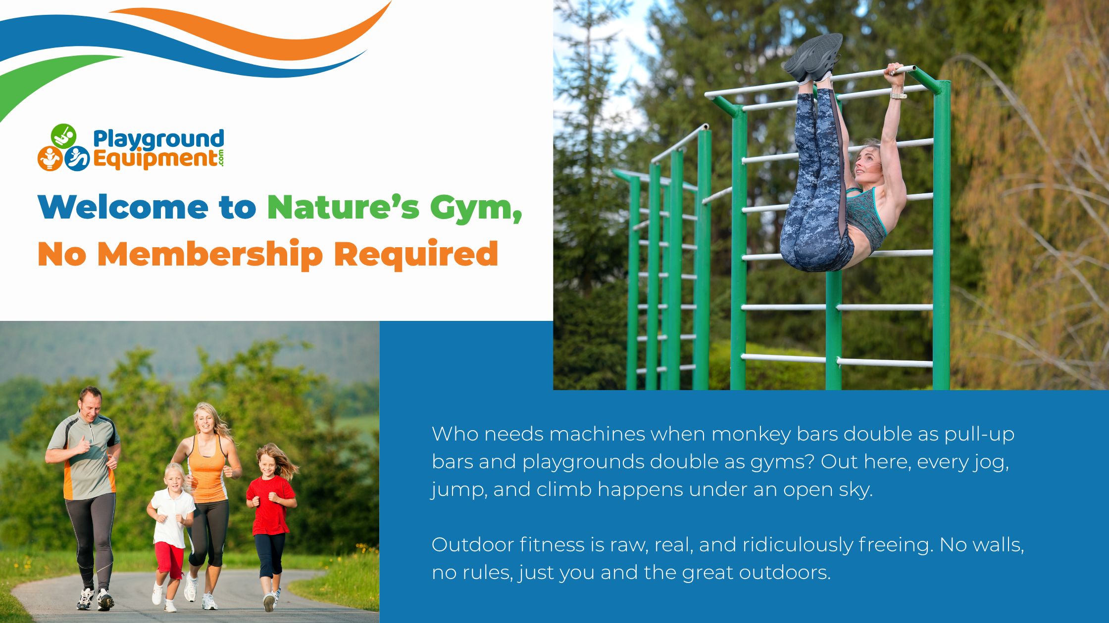 At PlaygroundEquipment.com, we believe fitness belongs where life happens—out in the open, under the sky, and among neighbors. We don’t just design outdoor gyms; we create gathering spaces that inspire healthier lifestyles, foster inclusion, and bring communities closer together.